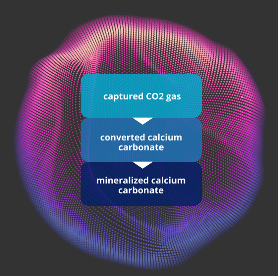The CCUS JV technology concept is to mineralize calcium carbonate from captured CO2 gas extracted from the flue gas of a fossil fuel burning process, such as an industrial plant or coal-burning power plant. Laboratory tests use a single-coil tubular reactor where CO2 gas is inserted together with brine water in a single-phase flow. As the mineralization process starts instantly, it reaches up to 100% conversion of CO2 to calcium carbonate. A metallic catalyst is used to dissolve in the brine water to improve the conversion speed and efficiency of the mineralization.